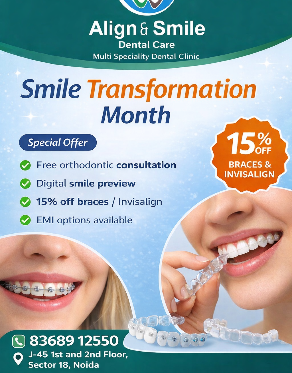 ✔ 15% OFF on braces and Invisalign treatment
