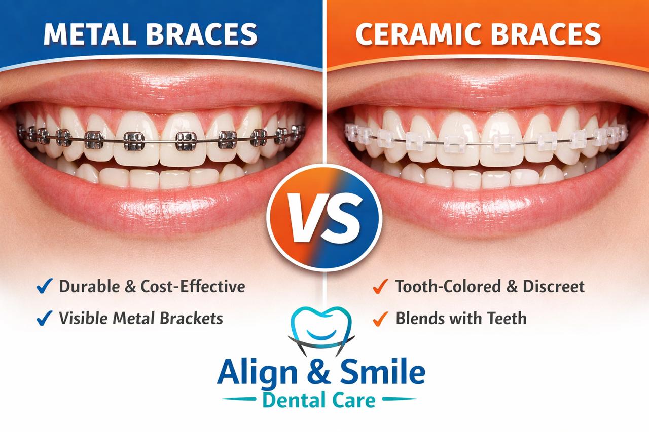 Ceramic braces are more aesthetic, while metal braces are more durable and cost-effective. Both are equally effective when used correctly.